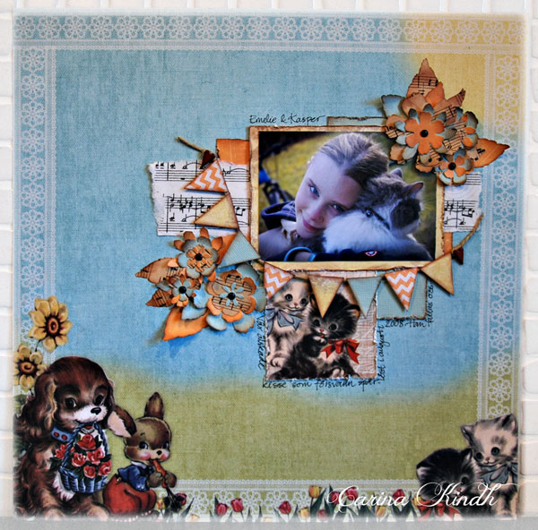 Reprints fina stjärnpapper i New England stil passar så bra som mönster på klänningen. Bakgrunden är från den andra sidan av samma papper. Kortet är byggt i lager på lager med papper och 3D-kuddar för att få lite höjd.