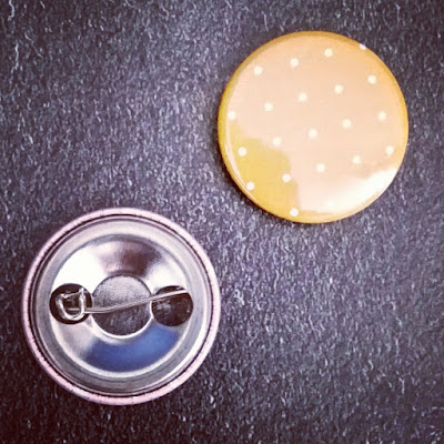 I've found this old jacke in Military green while moving the closet. Nice one, but I wanted to Spice it up a little and made these cute little Buttons (2,5cm) using some of my favorite reprint paper.
